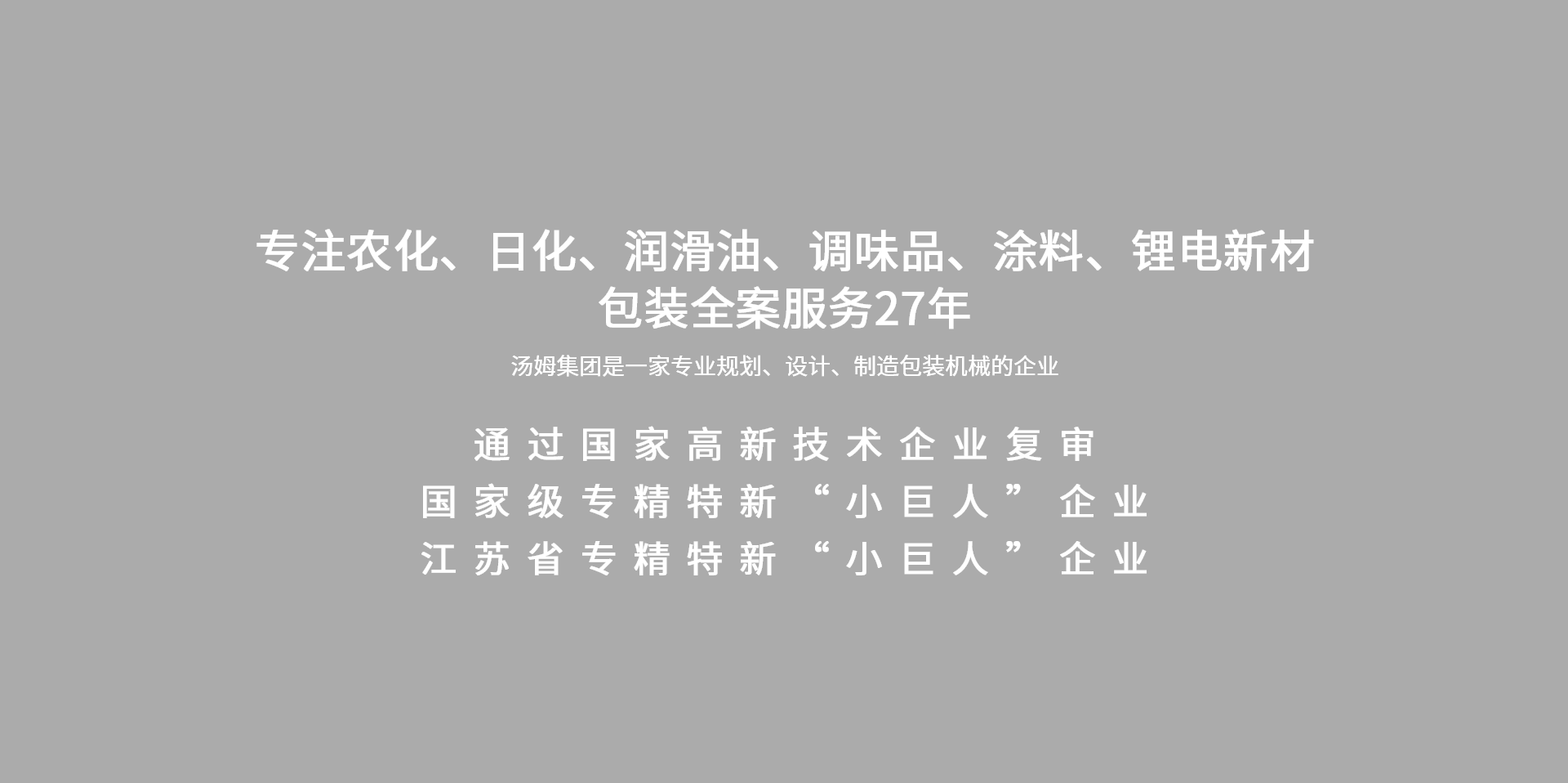 江蘇湯姆集團在液態(tài)、粉體、固體、顆粒等包裝領域的專長保證了工藝設計與整線工程的完美結(jié)合。建立了農(nóng)化、石化、調(diào)味品、日化、涂料等不同包裝領域的工藝設計體系,根據(jù)不同的包裝形式及具體的工廠布局,均可提供專為您項目而量身定制的交鑰匙解決方案 。
